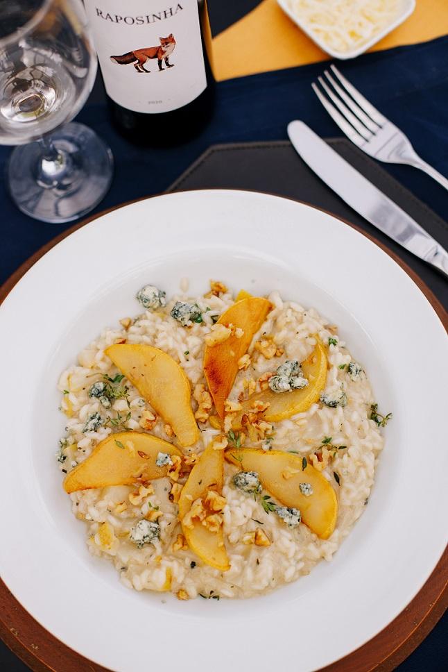 Arroz arboréo, queijo gorgonzola e pêra Blue cheese and pear risotto