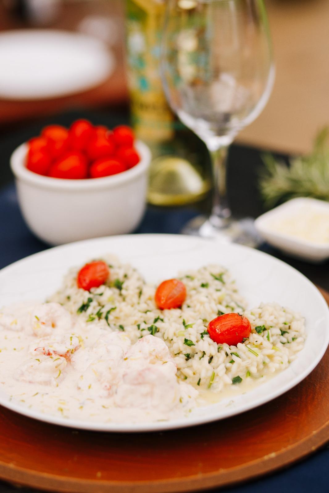 Arroz arbóreo, rúcula e camarões ao creme de limão siciliano Arugula risoto with lemon cream and shrimps