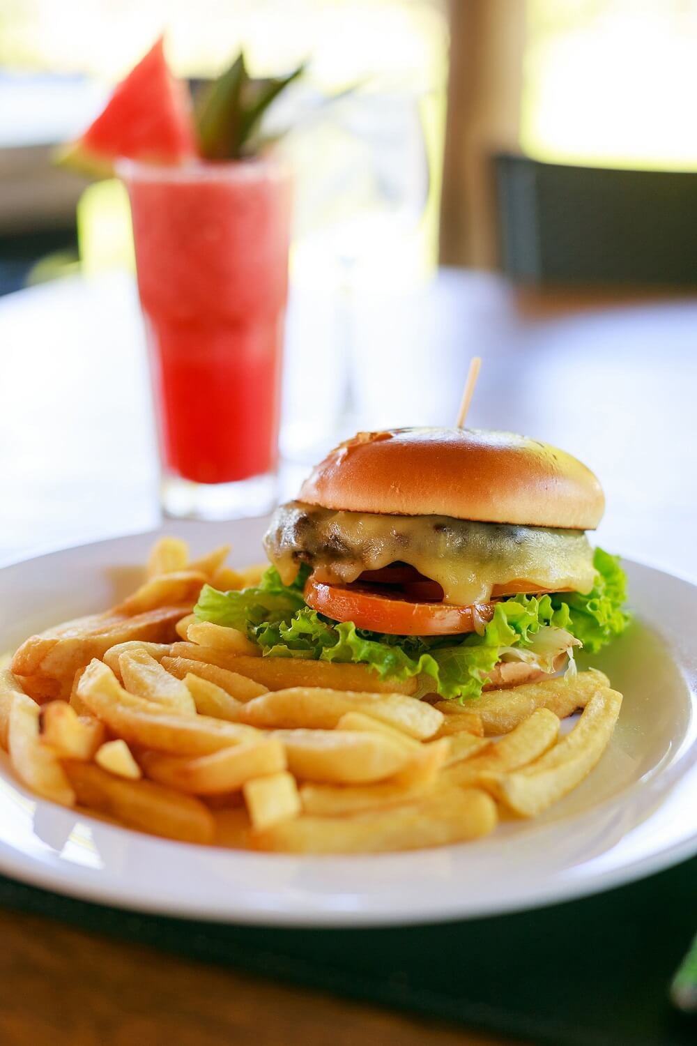 Hambúrguer, queijo mussarela, alface, tomate e pão de hambúrguer
