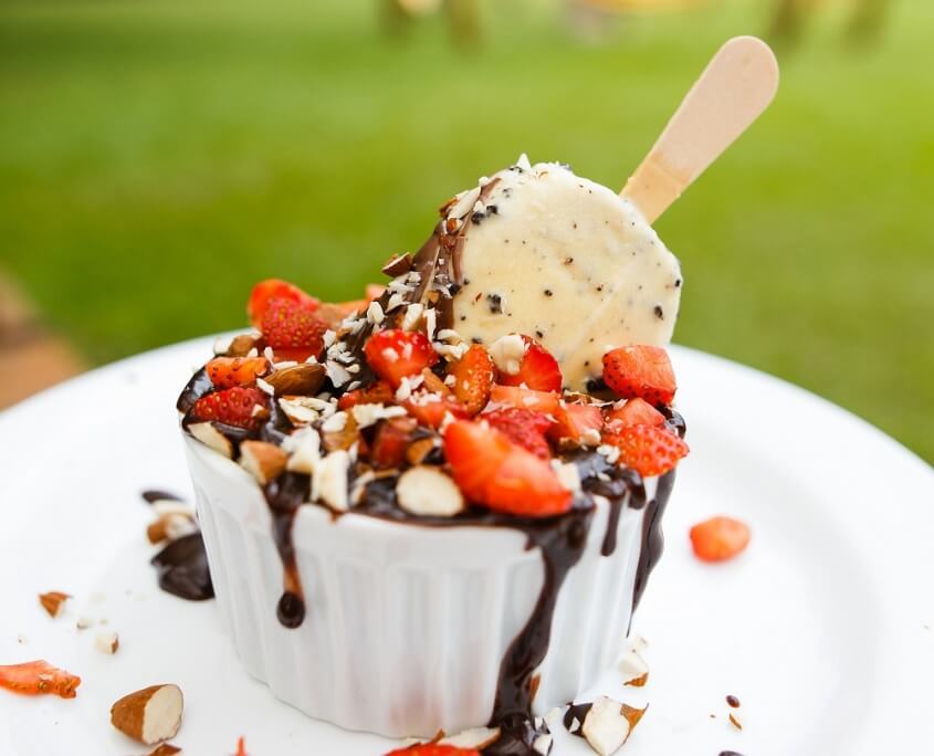 Sorvete de creme e calda de chocolate Vanilla Ice cream