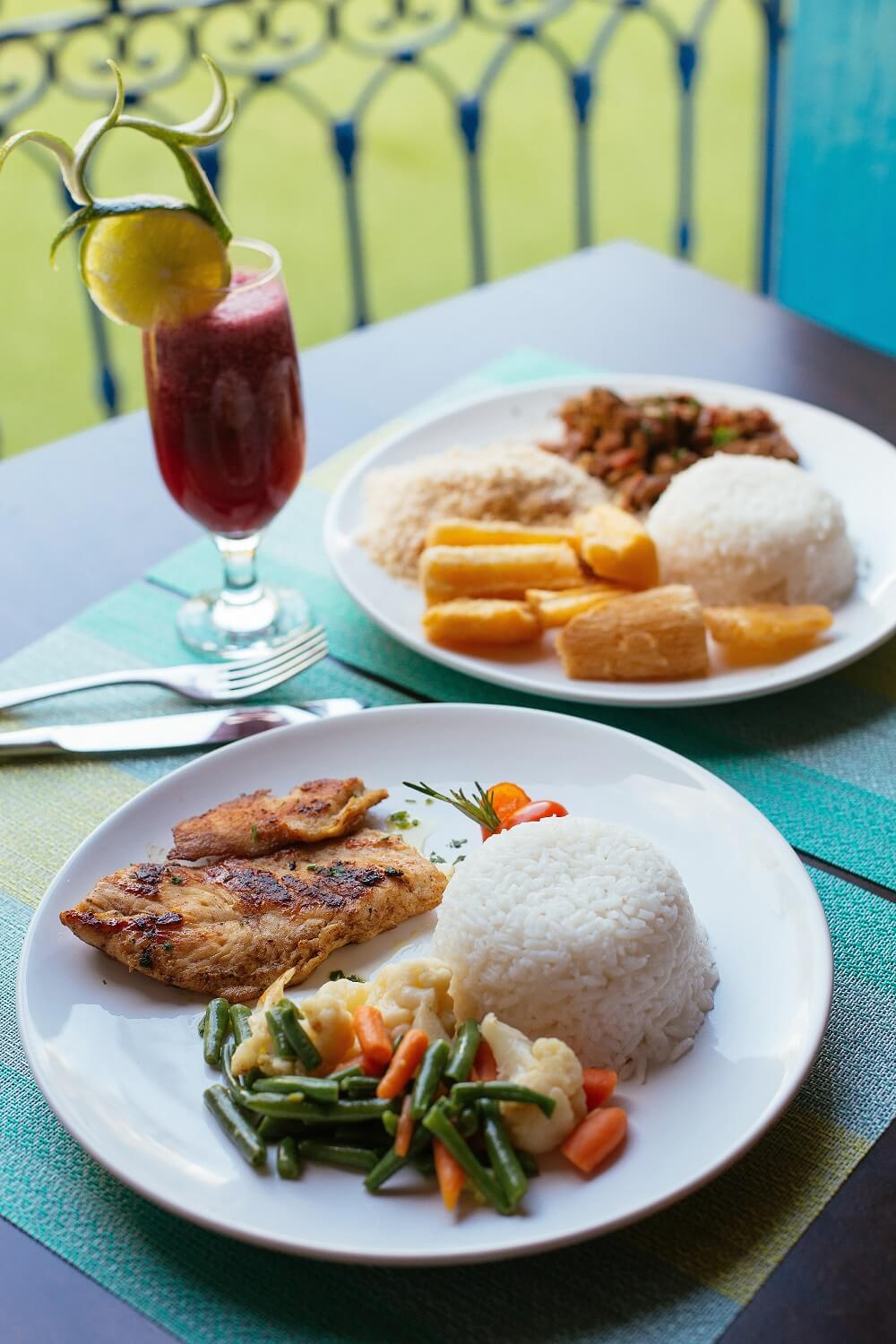 All the dishes come with rice, beans and one more option (smashed potato, french friens, vegetables or salad)
