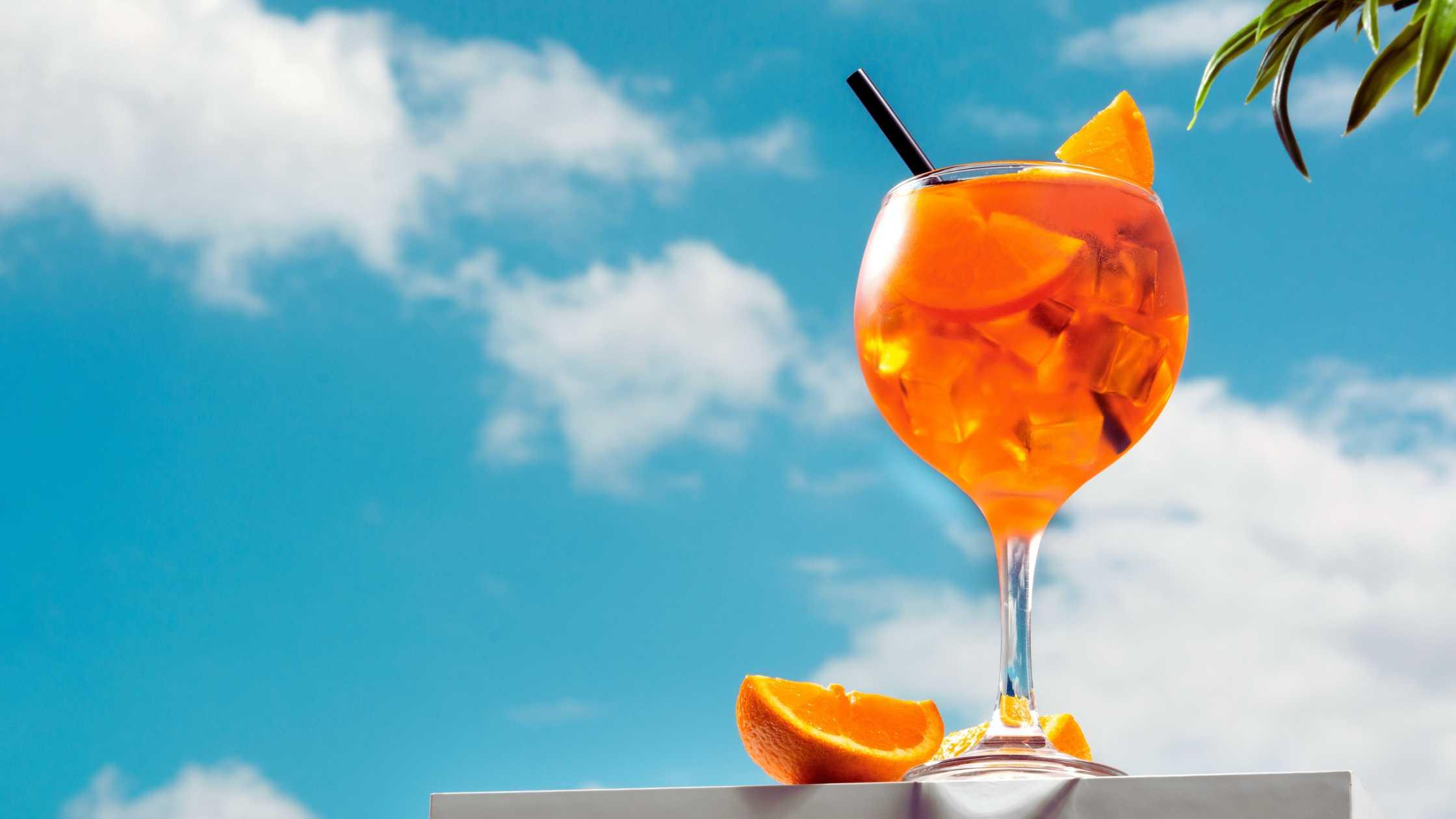 (Aperol, agua com gás, espumante, fatia de laranja)